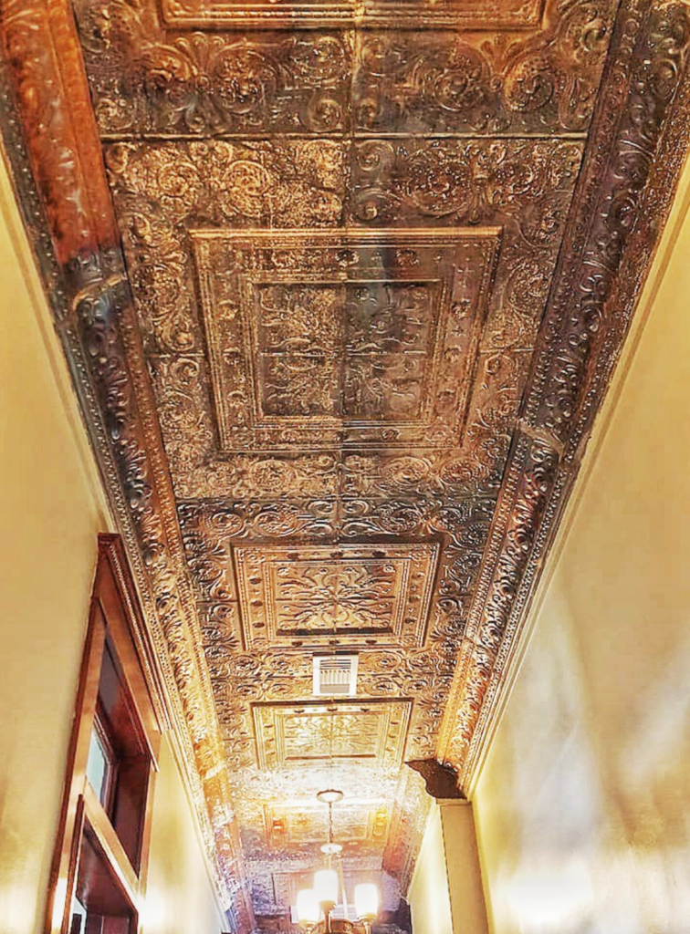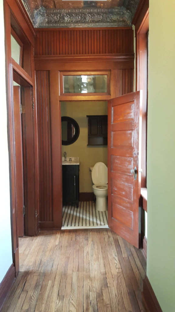 Enjoy high pressed tin ceilings, hardwood floors, and crisp black-and-white tile, as well as beautiful craftsmen style details throughout the suite.